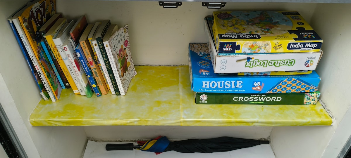 There is a smart TV to watch you favourite shows. And there are books to read,puzzles to solve and board games to play.