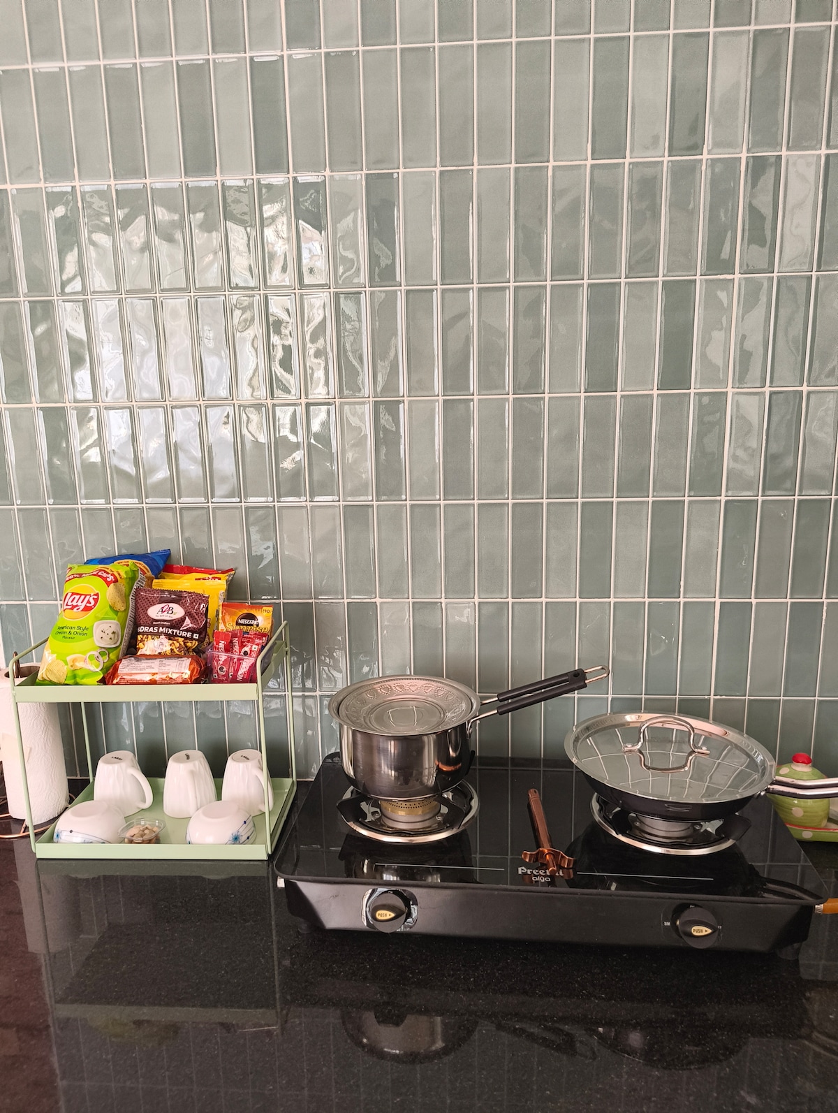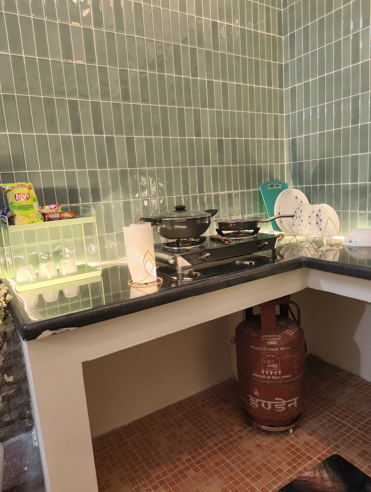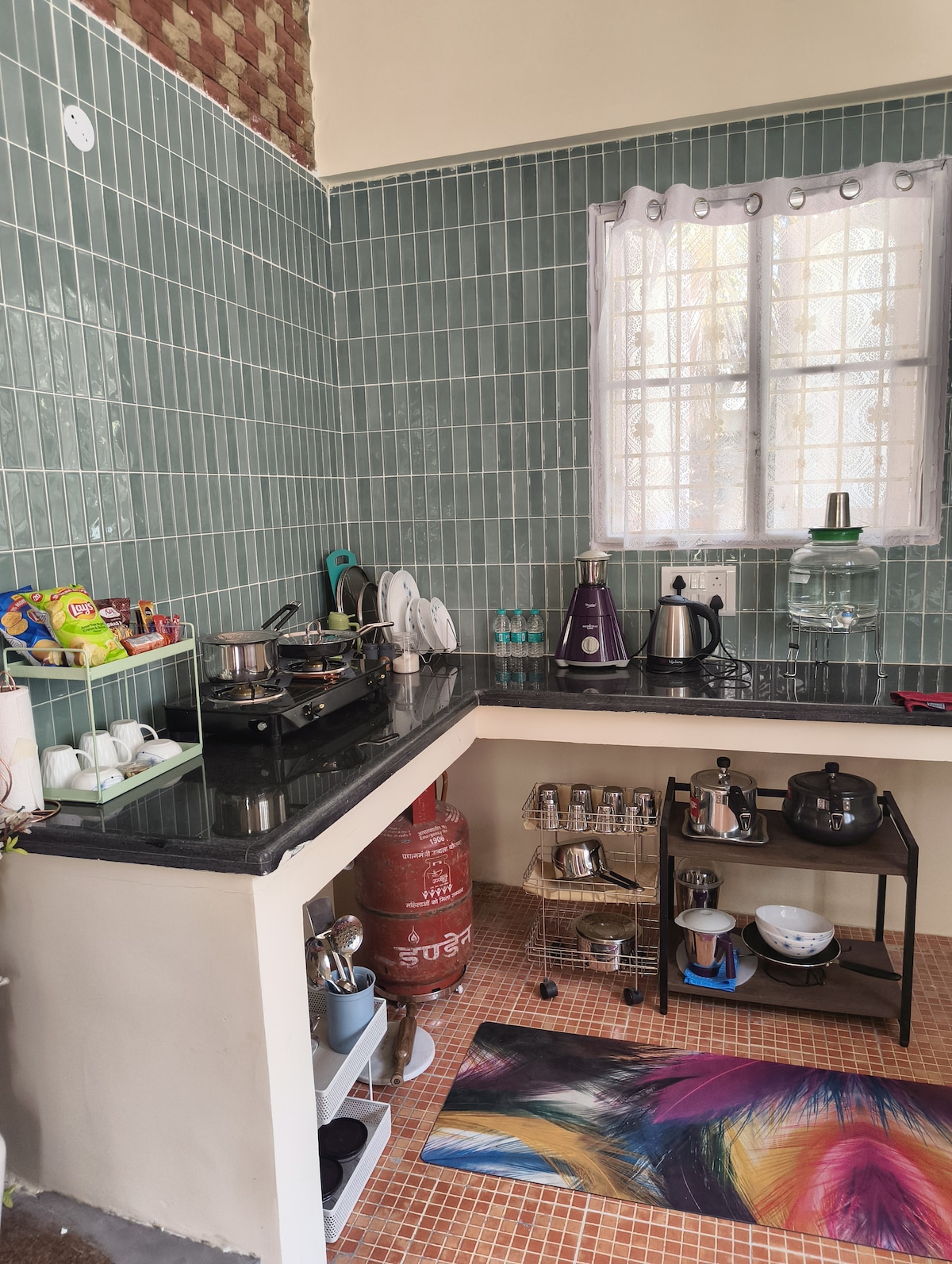 • Kitchen with gas stove for light cooking