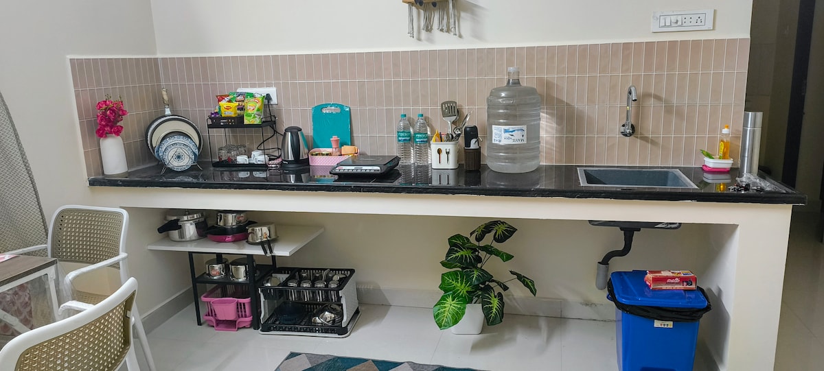 👉This is a 2BHK all inclusive Homestay.🌟Two AC bedrooms with attached bathroom. 🌟 Car parking available🌟SECOND FLOOR(No LIFT)A little cardio with a big reward 💪!!🌟Smart TV, WiFi and power backup available🌟 Kitchen has Induction and gas stove with cookware.Feels like home ,priced for affordability 👉House is near RAVINDRA BHARATHI GLOBAL SCHOOL, PALLIKARANAI. 👉10km from airport.👉23km from Chennai Central🚭 No Smoking🆔 All guests need to provide the ID proofs.The space🌟The house is located centrally in South Chennai giving best connectivity to places like Velachery,Perungudi,Taramani,Guindy,OMR and ECR.More space for less money in a residential neighborhood.🌟The house is very close to the 200feet Pallavaram -Thoraipakkam Radial Road (300feet away).🌟Supermarket, pharmacy, cafe and clinic available at walkable distance(2min-5min).Proximity to Neemstay✓Indian food: A2B Pallikaranai (600m)✓Continental food:Zone by the park(750m)✓Cinema and trampoline park: Grandmall (3.5km)✓Phoenix Mall(6.5Km)✓BSR Mall(4km)✓Hospitals: Kauvery, KamatchiBOOK NOW !!!!Guest accessAs our guest, you will have exclusive full access of the house.🌟Shared access: Laundry room,Terrace and Parking lot.🌟 No unregistered guest or visitors allowed in the property.PARKING: 🌟Free covered parking for bike and car inside the premises. 🌟You can also park on the street The street is wide enough for parking.Other things to note🆔 PROOF: As per government norms we request you to produce ID proof of guests after booking is confirmed via Airbnb message. Lockbox access code will be shared only after ID verification.🍟FOODBreakfast or other meals are not provided. Swiggy/Zepto/Zomato services can be used to order food and stock up groceries.Induction stove is provided to keep the cost of stay affordable. Gas stove and cylinder can be arraged at extra cost of Rs 800. Please check with us during booking.We request guests to wash the used utensils after use.🚭 NO SMOKING: Smoking, illegal drugs and party are not permitted. If we find smoke smell upon checkout Rs.2000 penalty will be charged.POWER BACKUP Power is provided by government.Inverter power backup is provided for essentials like fan, light and a few power sockets.For outages more than four hours, we will try to compensate for the inconvenience caused.🧹CLEANING:Cleaning services will be provided based on request for Stays < 7 days and will be charged 200rs per cleaning.For Stays > 7days, cleaning will be done twice a week during the presence of guest.Guests are requested to dispose trash in carpark bin regularly. 🗑👚WASHING MACHINE::Washing machine is available in the storage area and is charged at Rs 100 per wash. Free for stays >3 daysTiming 0800-1400noon (MON-SUN).Clothes can be dried on the terrace in the clothesline.
