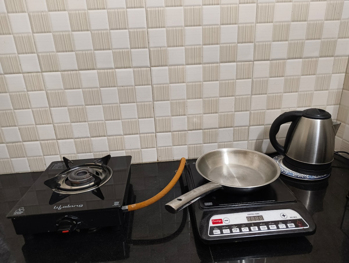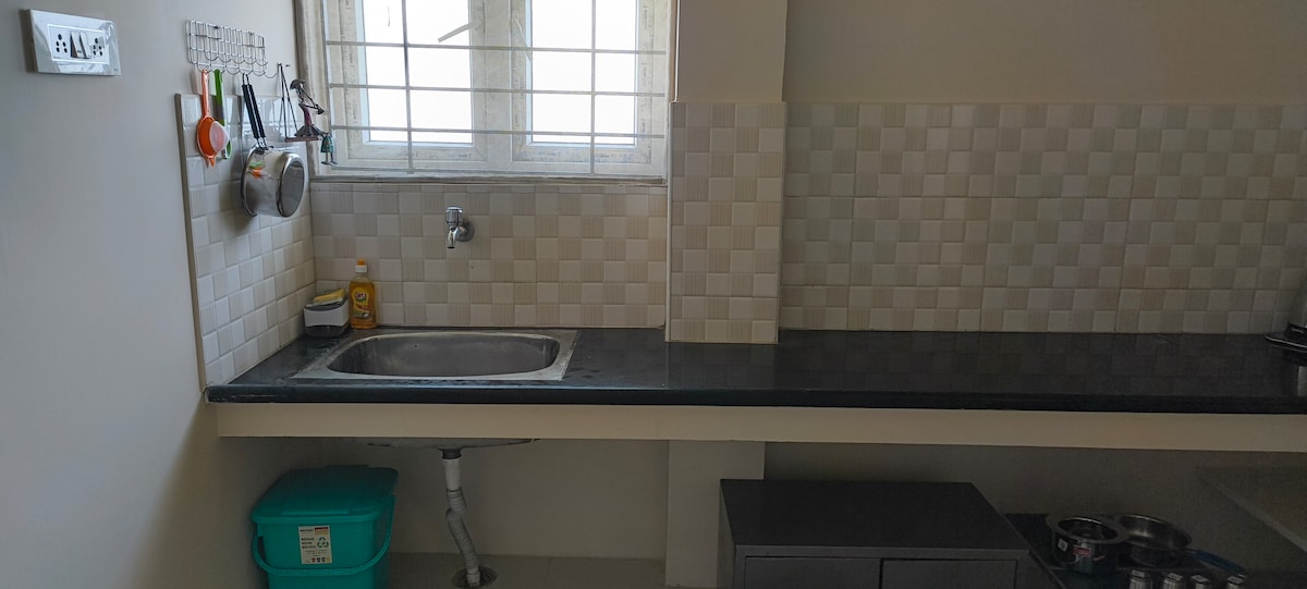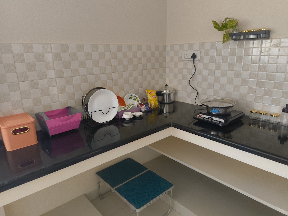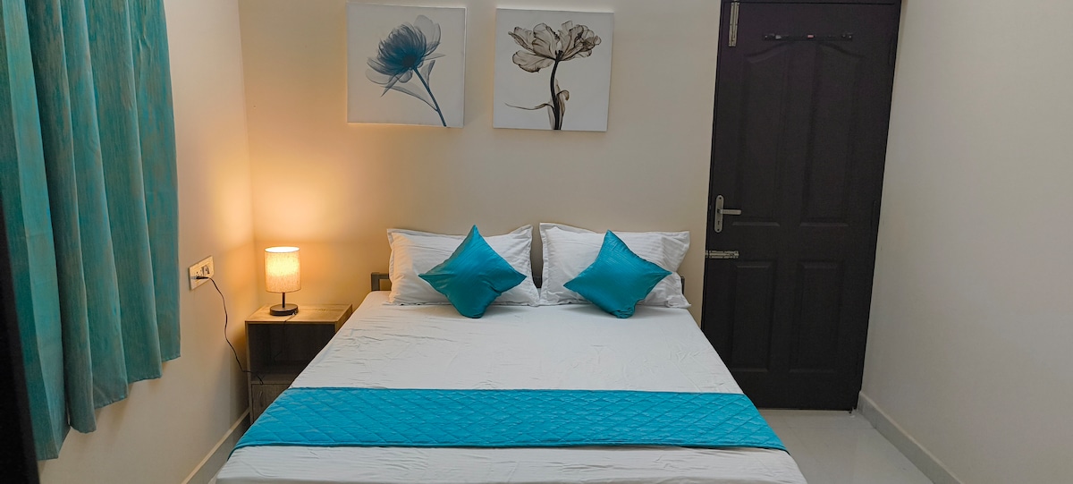 🏠300sqft studio with one AC bedroom and a private kitchen .NO SHARING.🌟 Kitchen has induction stove with basic cookware.🌟 Inverter Power backup🌟SECOND FLOOR(NO LIFT)👉House is near RAVINDRA BHARATHI GLOBAL SCHOOL, PALLIKARANAI. Exact locations will be shared on booking.✈️10km from airport and Chennai trade center 🚂23km from Chennai Central🚭 No Smoking🆔 Guest ID proofs needed🏠This is a homestay NOT HOTELThe spaceThis is a Private Studio apartment. 🧘Enjoy greater privacy with entire home with private entrance all for yourself.★ The KITCHEN is private and equipped with a induction stove, kettle , basic cooking utensils, cutlery, dinnerware .Single burner gas stove is provided as a complimentary .★ AC BEDROOM has large windows (with blackout curtains), open shelf, Queen size bed and attached BATHROOMMore space at a better price.Access to the full kitchen and laundry.Proximity to short term rental✓Indian food: A2B Pallikaranai (600m)✓Continental food:Zone by the park(650m)✓Airport(10km)✓Cinema and trampoline park: Grandmall (3km)✓Phoenix Mall(6Km)✓BSR Mall(4km)✓Hospitals: Kauvery, Kamatchi (500m)✓Offices: Shell centre, Fayola Towers, Fortune Towers (500m)All food delivery services are active in this area.👚WASHING MACHINE::Washing machine is available in the laundry room and is charged at Rs 100 per wash. Free for stay>5 days.Timing 0800-1400noon (MON-SUN).Clothes can be dried on the terrace in the clothesline.Guest accessThe airbnb is in the Second floor.Guests have access to* Common Terrace* Car Park*Laundry roomOther things to noteInduction stove is provided to keep the rent nominal. If gas stove is needed,additional charge of 800 will be applied.🆔 PROOF: As per government norms we request you to produce ID proof of guests after booking is confirmed via Airbnb message. Lockbox access code will be shared only after ID verification.🚭 NO SMOKING: Smoking and partys are not permitted. PARKING: Free covered parking for car/bike inside the premises.CLEANING: Cleaning services will be provided based on request for short stays and will be charged 250rs. For stays longer than 7 days, full cleaning will be done once a week.